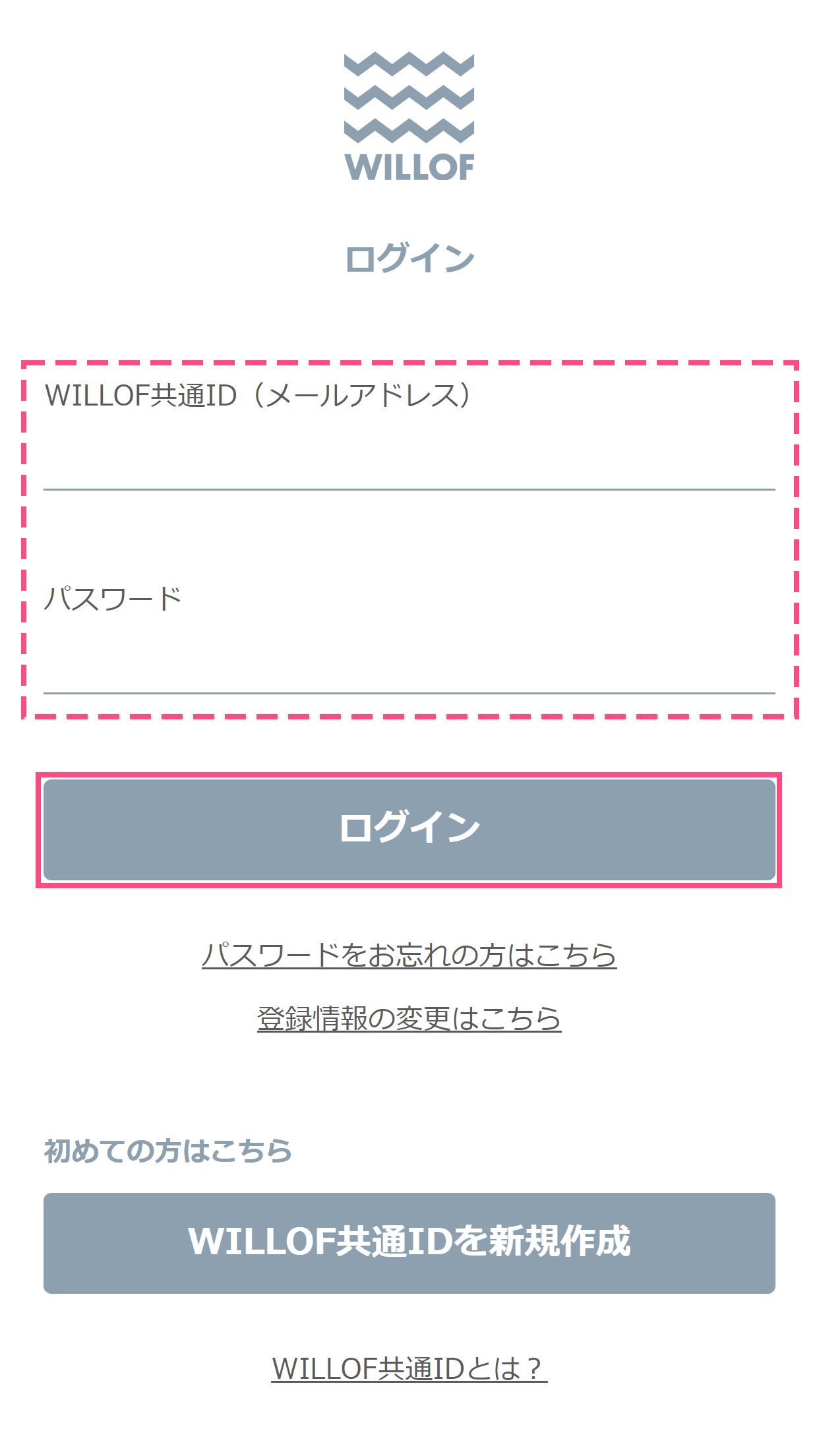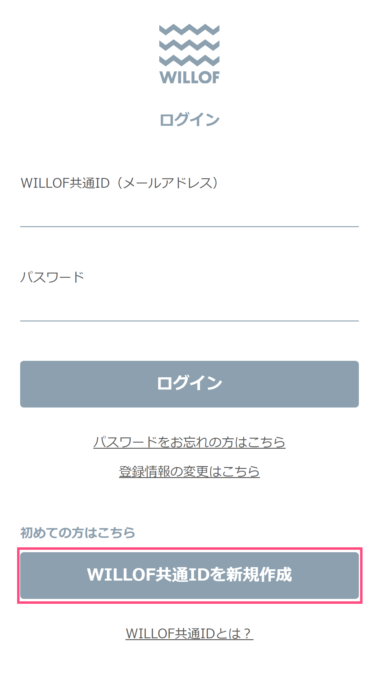 5. WILLOF共通ID情報を入力し「登録」を選択